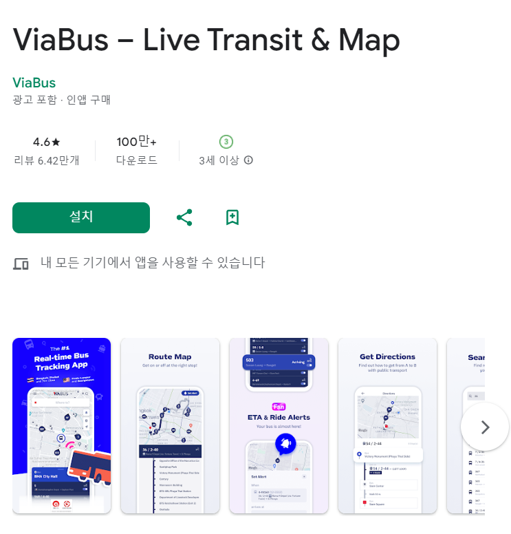 치앙마이 버스 운행을 확인할 수 있는 ViaBus앱 앱스토어 화면