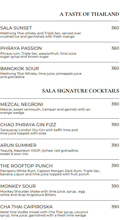 sala rattanakosin eatery and bar Thank you for your interest in sala rattanakosin Bangkok. Please note that all reservations for the Wat Arun Indoor 1st Floor on 19-21 November will not have airconditioning available due to maintenance. We apologize for an