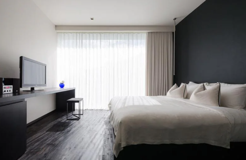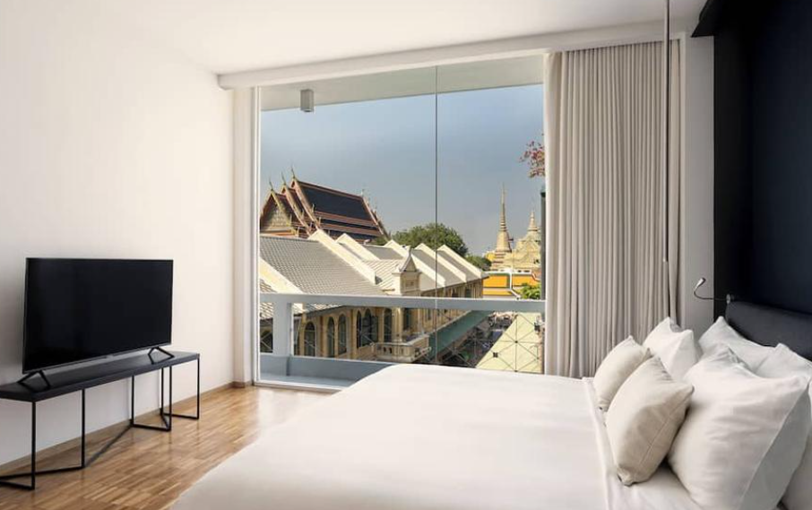 객실 뷰는 기본적으로 이런 곳이다. 통창으로 되어 있고, 자세히 보면 창문앞에 소파가 있다. 마음껏 뷰를 감상하란 의도가 다분히 들어난다. 인터리어는 모던하고 심플하다. 왓아룬의 클레식한 뷰와 공간이 대조되면서 더욱 감각적인 분위기를 즐길 수 있다.