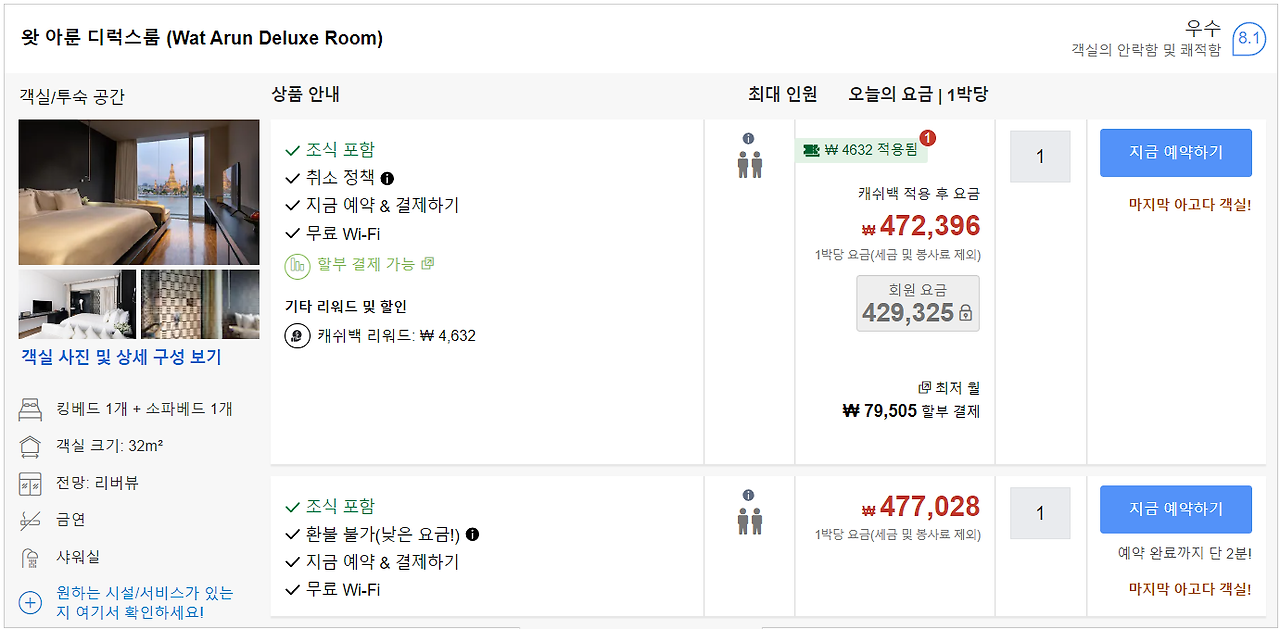 원하는 시기에 호텔을 예약하고 싶다면 아래 링크를 통해 가격을 확인해 볼 수 있다.