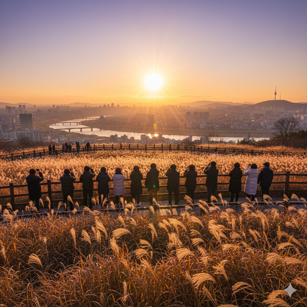 특히 해가 떠오르면서 황금빛으로 물드는 억새밭과 서울의 풍경이 정말 아름다워요. 다른 곳보다 상대적으로 덜 붐비는 편이라 조용하게 새해를 맞이하고 싶은 분들께 강력 추천합니다!