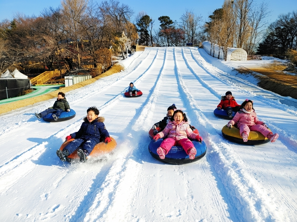 플라스틱 썰매가 아닌 충격 흡수가 잘 되는 튜브 썰매를 사용합니다. 슬로프도 유아용(초급)과 일반용(중급)으로 나뉘어 있어, 어린아이부터 초등학생, 어른까지 안전하게 속도감을 즐길 수 있습니다. 특히 슬로프 길이가 꽤 길어서 내려오는 재미가 쏠쏠합니다.