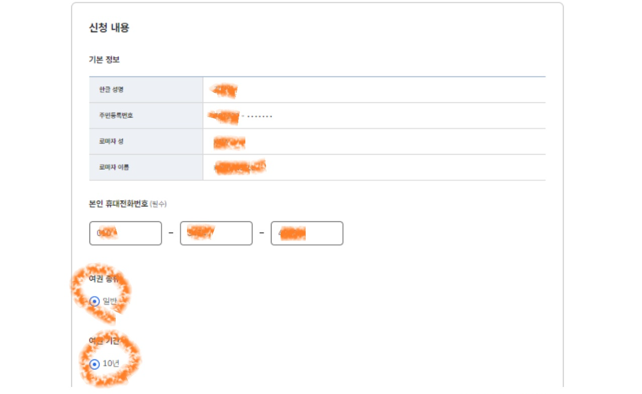 -본인 기본 정보 기입 & 여권 종류/기간 선택