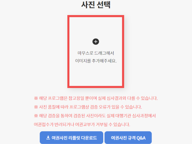 아래 버튼을 이용해서 온라인 여권 사진 검증 기능에 접속할 수 있다.