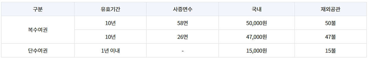 여권 유효기간이 6개월 미만이라면 해외 입국 국가에 따라 입국이 안될 수 있기 때문에 출국 시 6개월 미만이거나, 장기 여행을 계획하고 있다면 그에 맞춰 미리 맘편히 재발급을 받아 두는 것이 좋다.