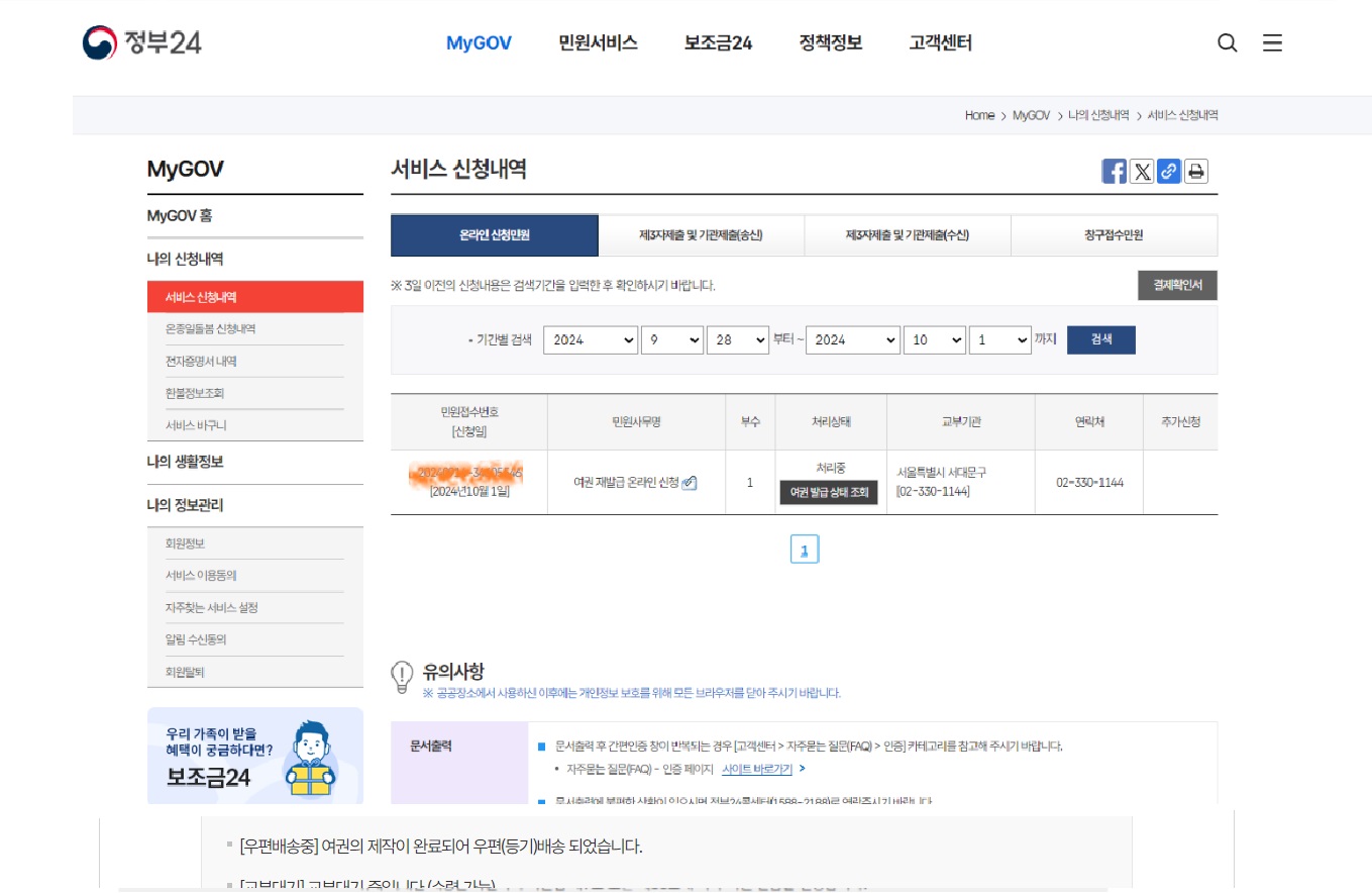 아래 버튼을 통해 정부24 사이트에서 신청한다.