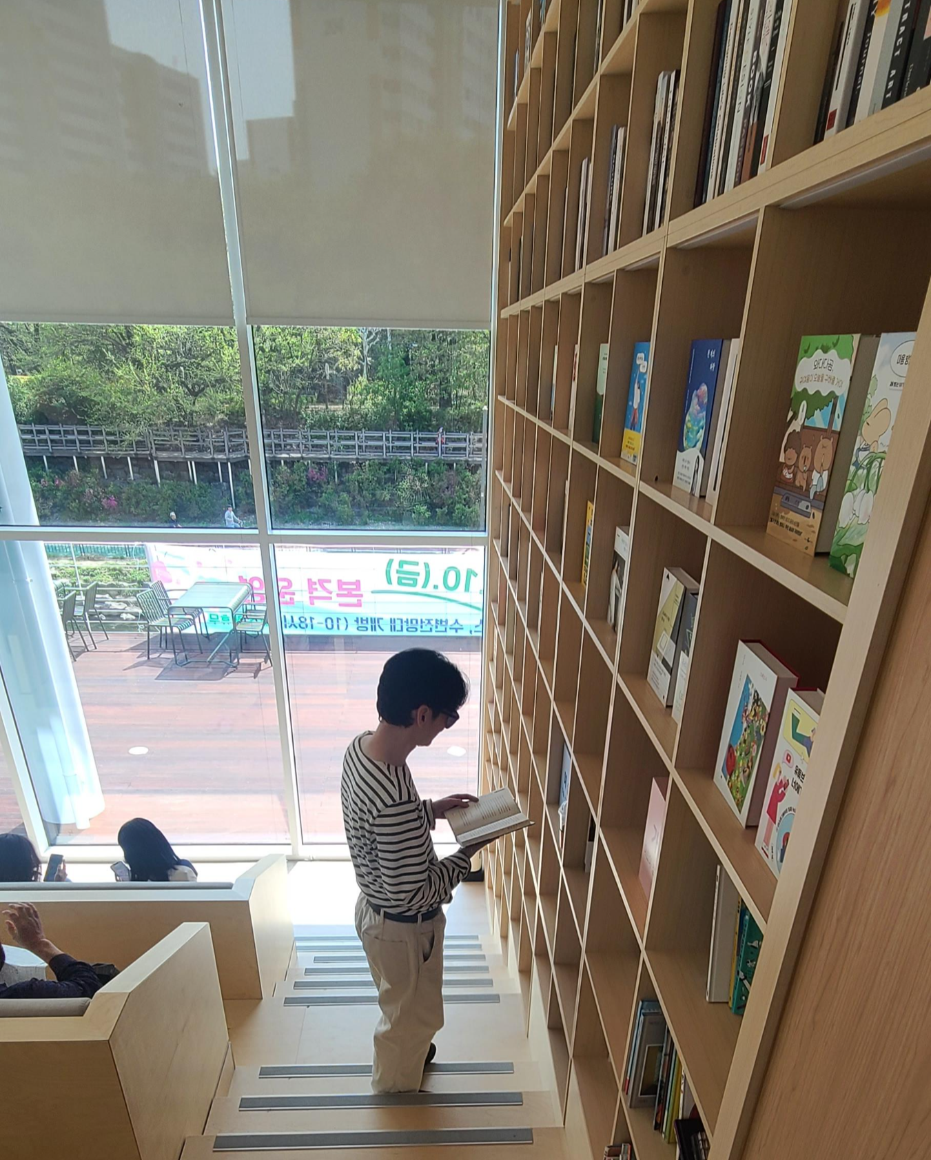 우이마루의 가장 큰 특징은 수변 조망과 결합된 특화된 휴식 콘텐츠입니다. 실내에 마련된 계단식 '북스텝'에는 편안한 긴 소파와 함께 헤드셋을 착용하고 원하는 음악을 들을 수 있는 CD 플레이어 청음 좌석 6석이 비치되어 있습니다. 방문객들은 넓은 통창으로 우이천의 풍경을 조망하며 음악을 감상할 수 있으며, 현재 주민 참여형 음반 CD 기부 이벤트도 진행 중입니다. 더불어 야외에는 시그니처 원두를 제공하는 수변 카페와 즉석 라면 조리실이 운영되고 있어 미식과 휴식을 동시에 충족시킵니다