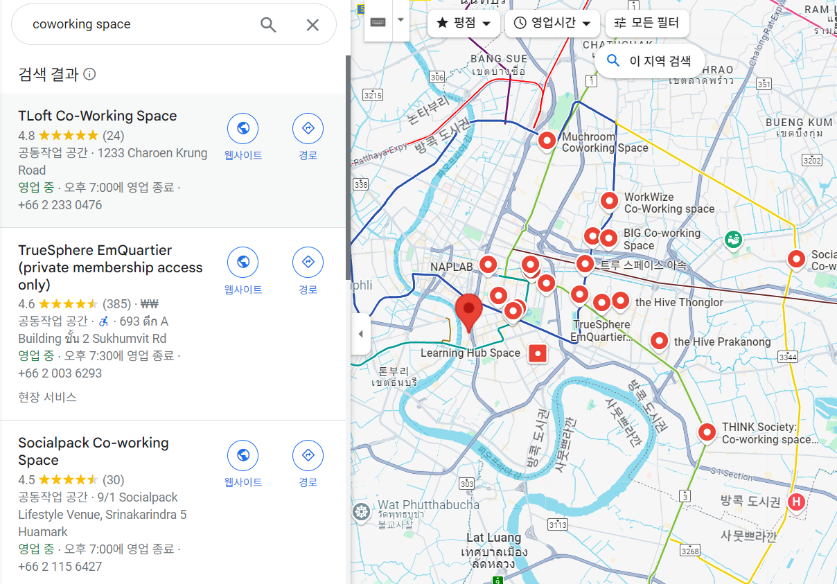 1. 방콕 코워킹스페이스 지도 검색