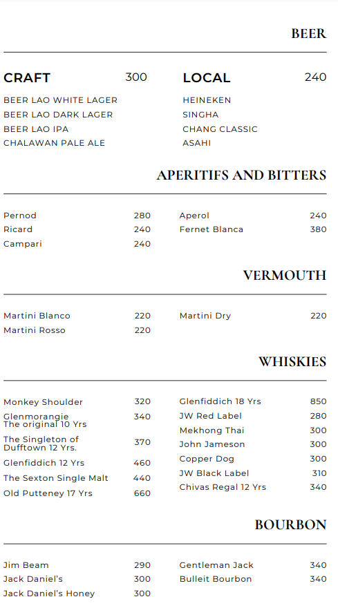 2~3시간 야경을 중심으로 부담없이 즐기려면 루프탑바 가장 좋은 선택이 될 수 있다. 레스토랑에는 사람이 몰리기 때문에 비교적 루프탑바는 사람이 적다. 예약없이 워크인으로 루프탑바에서 야경을 즐겼다는 후기를 볼 수 있다. 가격도 부담없다. 140바트부터 시작되는 커피와 차, 240바트부터 시작되는 맥주를 비교적 부담없이 즐길 수 있다. 120바트 부터 시작되는 루프탑 메뉴도 간단하게 곁들일 수 있다.