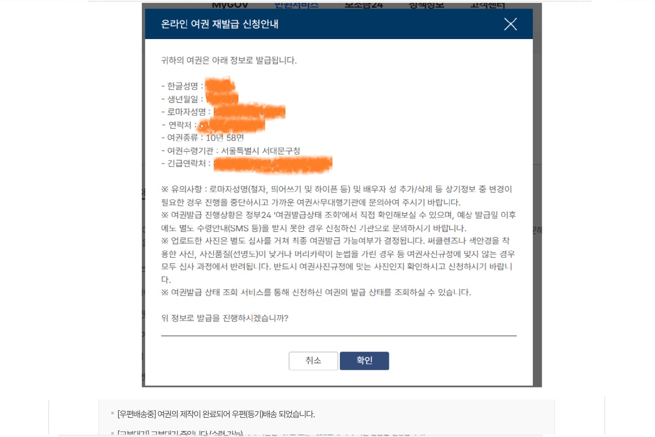d.온라인 여권 재발급 신청 안내 팝업 확인 선택