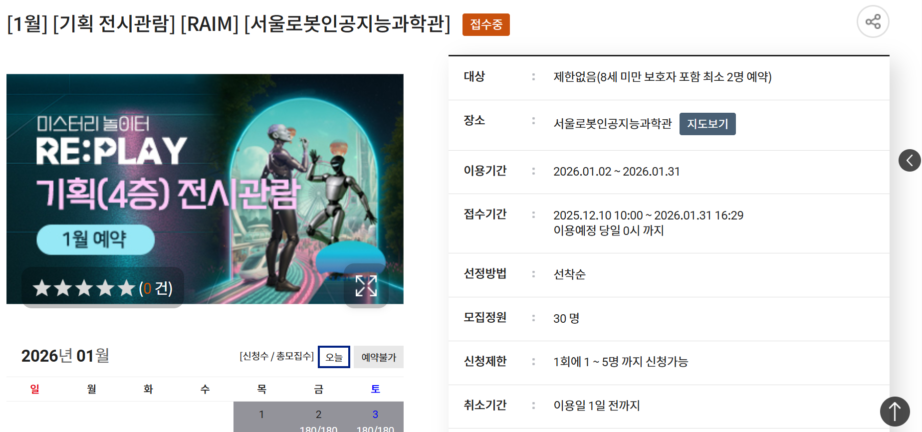 - 3층 (예약 필수, 유료): 다양한 로봇 체험, AI 화가, 로봇 개 '스팟' 등 핵심 콘텐츠가 모여 있는 메인 전시관은 반드시 예약(유료 결제)을 해야 입장 가능합니다.